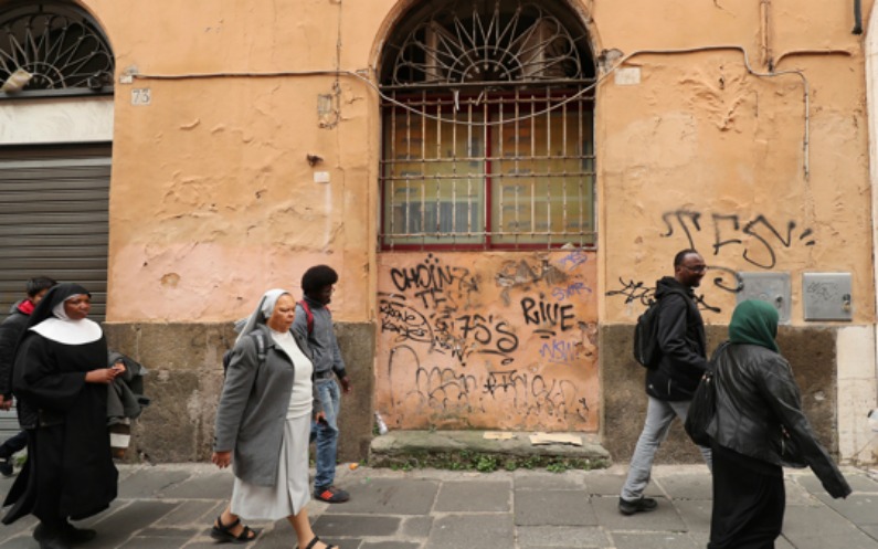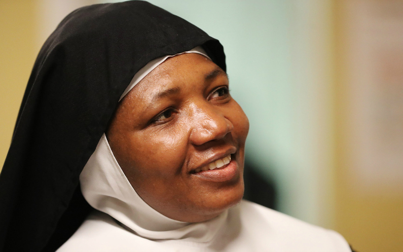 Une réfugiée nigériane et une sœur catholique de l’abbaye Perpetwa parle des cours qu’elle suit à l’église épiscopale Saint-Paul-dans-les-Murs de Rome, le jeudi 7 mars 2019. L’Église de Jésus-Christ des Saints des Derniers Jours s’associe à l’Église Catholique aider les réfugiés.