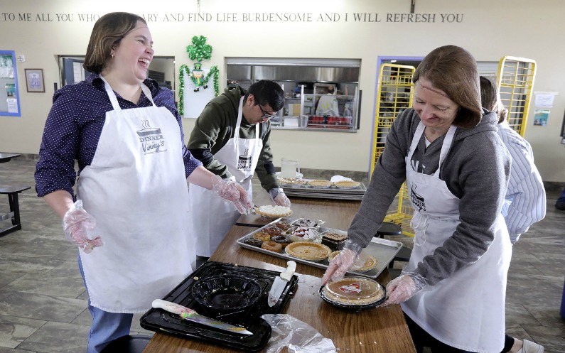 Les Saints des Derniers Jours représentent plus de la moitié des bénévoles de la cantine de Saint-Vincent-de-Paul, un centre pour les sans-abri géré par les Catholic Community Services de l’Utah. Le jeudi après-midi, un groupe de plusieurs congrégations de Murray (Utah) a préparé le dîner.