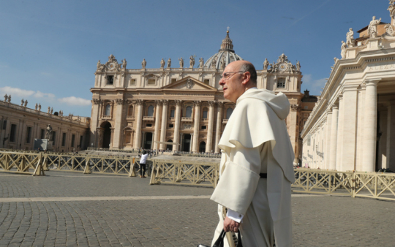 Un prêtre marchant près du Vatican à Rome, le samedi 9 mars 2019. Ce jour-là, Russell M. Nelson, président de l’Église de Jésus-Christ des Saints des Derniers Jours rencontre le pape François.