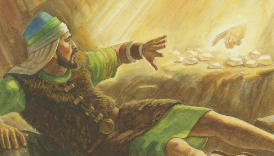 Face à la nécessité de traverser la mer dans l’obscurité, Le Frère de Jared demanda au Seigneur de résoudre la situation. Le Frère de Jared créa 16 pierres, liquéfiées à partir d’un rocher et coulées dans un moule, blanches et claires. Le Frère de Jared pria ensuite avec ferveur demandant au Seigneur de toucher les pierres avec son doigt, les allumant pour procurer de la lumière pendant qu’ils traversaient la mer.