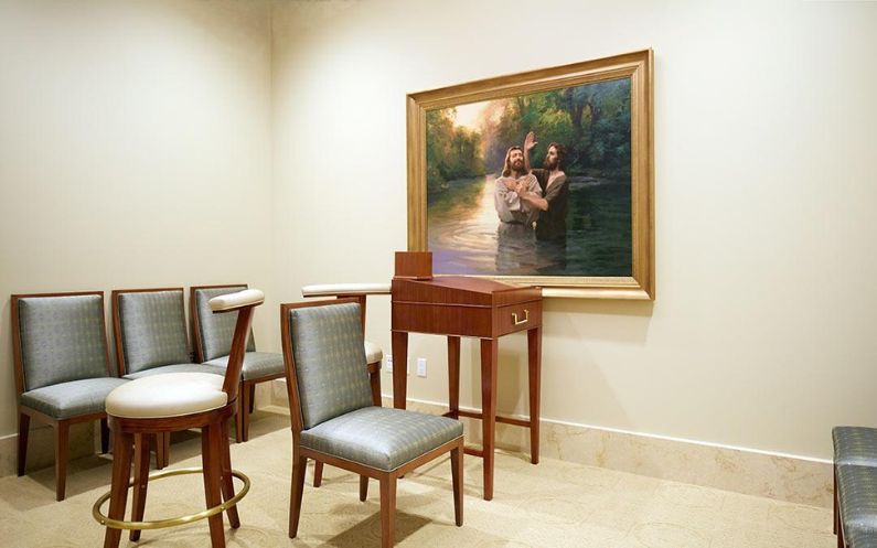 Dans cette salle d’ordonnances, les usagers qui détiennent une recommandation peuvent participer à des baptêmes par procuration pour des personnes (de préférence leurs propres ancêtres) qui sont décédées sans en avoir eu l’occasion. Nous pensons que les esprits de ces ancêtres auront alors la possibilité d’accepter ou de rejeter cette ordonnance accomplie par procuration pour eux.