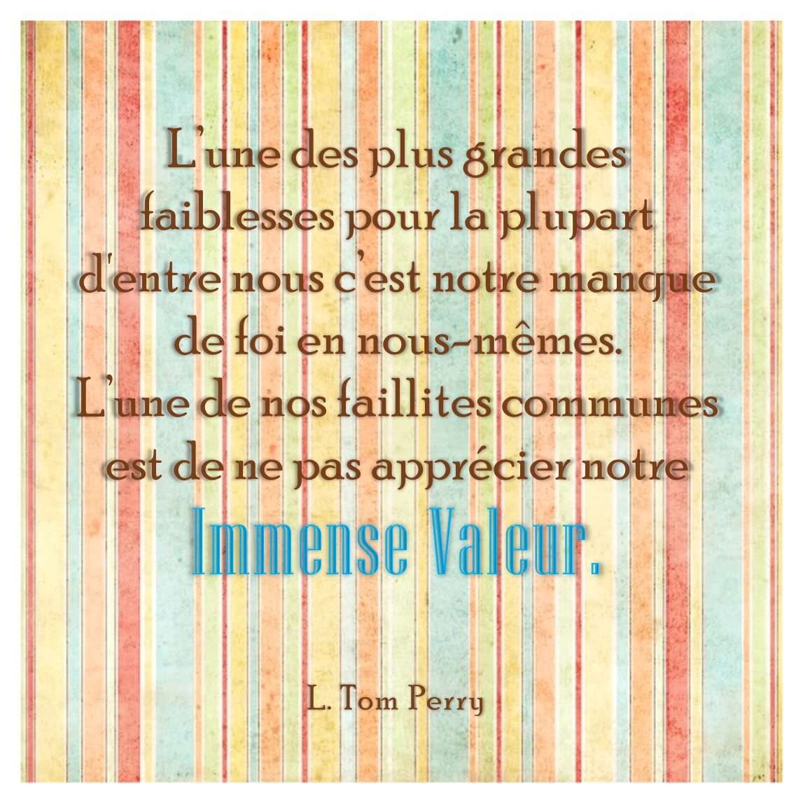 Etre célibataire dans une religion axée sur la famille, ce n’est pas facile, et il y a rarement des solutions simples sur la voie du mariage éternel. Cependant, nous pouvons trouver du réconfort en sachant que Dieu a un plan pour chaque individu qui est aussi particulier que ses empreintes digitales. Puisque nous avons le libre arbitre d’agir par nous-mêmes, il est de notre responsabilité de rechercher la révélation personnelle et de recevoir la confirmation que notre chemin de vie est acceptable auprès de Dieu. Si ce chemin est différent du typique-mormon-marié-à-21, ainsi soit-il. Aux yeux de Dieu, il est beaucoup plus important que nos vies soient en accord avec Lui, plutôt qu’en accord avec la perspective des gens qui nous critiquent parce que nos vies ne correspondent pas à un moule préétabli.