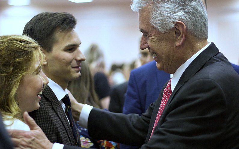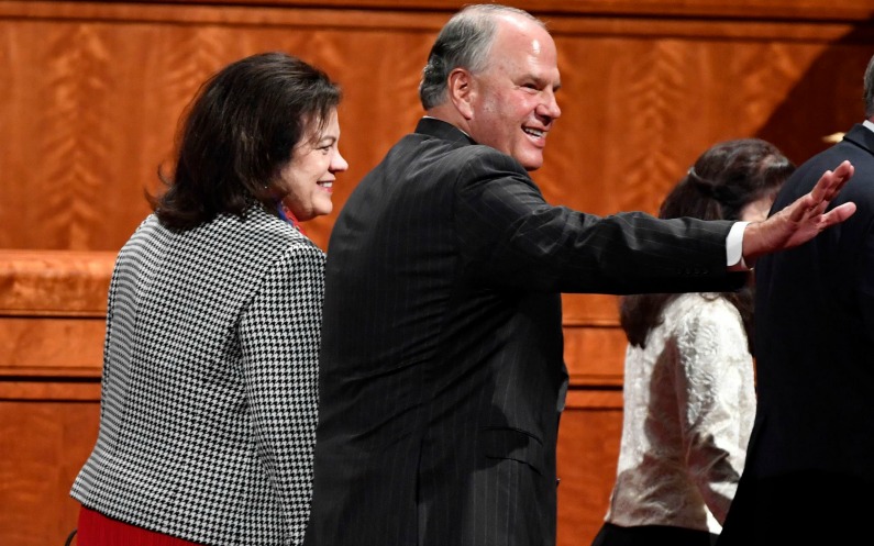 Elder Uchtdorf greeting a couple