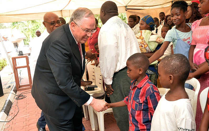 Elder Andersen serre la main d'enfants