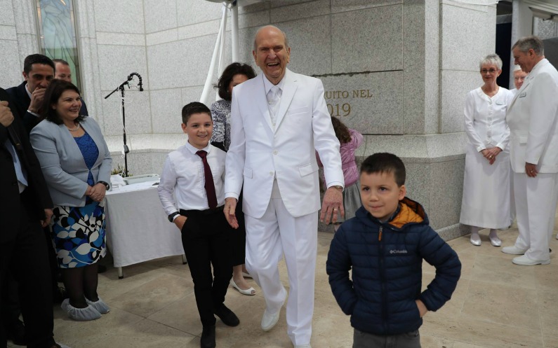 Président Nelson devant le temple de Rome