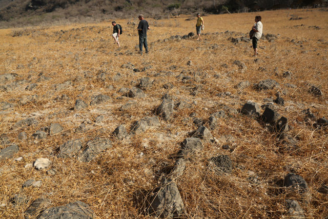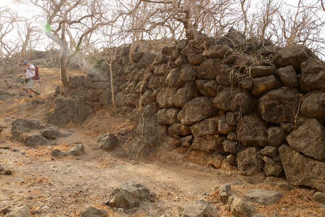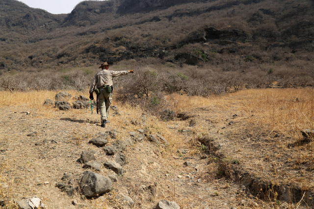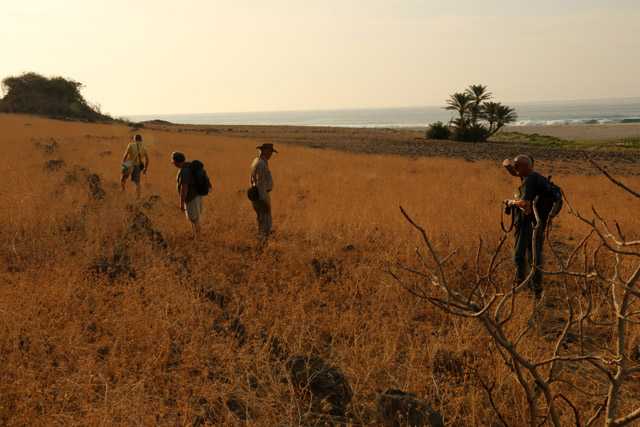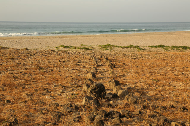 Les archéologues sont venus à Khor Kharfot pendant huit jours, d’abord pour faire un travail de reconnaissance, regarder et cartographier les grandes traces archéologiques qui parsèment le sol. Il y a de longues et mystérieuses rangées doubles de pierres et une tour dont la raison d’être ne peut être que devinée. Comme ils ont des yeux expérimentés, j’ai demandé au Dr. Hauck ce qu’ils recherchaient?