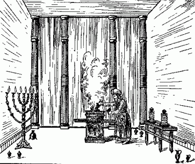 Dans le Lieu Saint se trouvait un candélabre ou menorah, d’un côté du sanctuaire, et la table des pains de proposition, de l’autre côté. Devant le voile (appelé le second voile) qui conduisait au Saint des Saints se trouvait l’autel de l’encens. Ici, les prêtres brûlaient de l’encens comme symbole des prières d’Israël qui s’envolaient vers les cieux. (C’est ce que faisait Zacharie dans le Temple d’Hérode lorsque Gabriel lui est apparu pour lui annoncer la naissance de Jean-Baptiste.)
