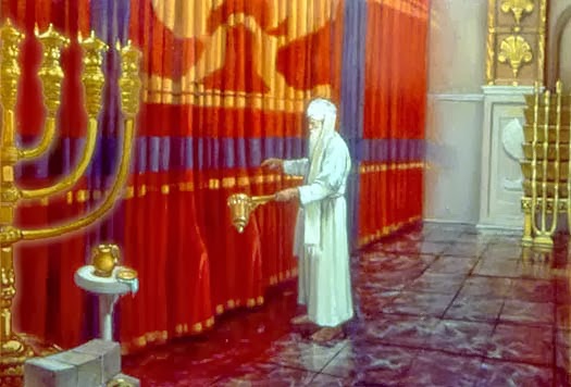 Ce voile devant le Saint des Saints se trouve à la même place que dans le Temple d’Hérode et qui s’est déchiré à la mort du Seigneur (voir Matthieu 27:5). Ce que nous ne parvenons parfois pas à reconnaître c’est que ce voile représente le Seigneur, Lui-même.