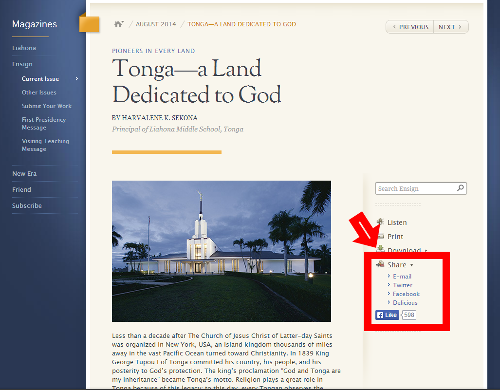 Vous lisez sans doute déjà beaucoup d’articles qui renforcent votre témoignage. Que ce soit votre blog préféré ou les magazines officiels de l’Eglise, vous pouvez contribuer à établir une forte influence des réseaux sociaux en partageant les meilleurs articles avec vos amis et vos fans.