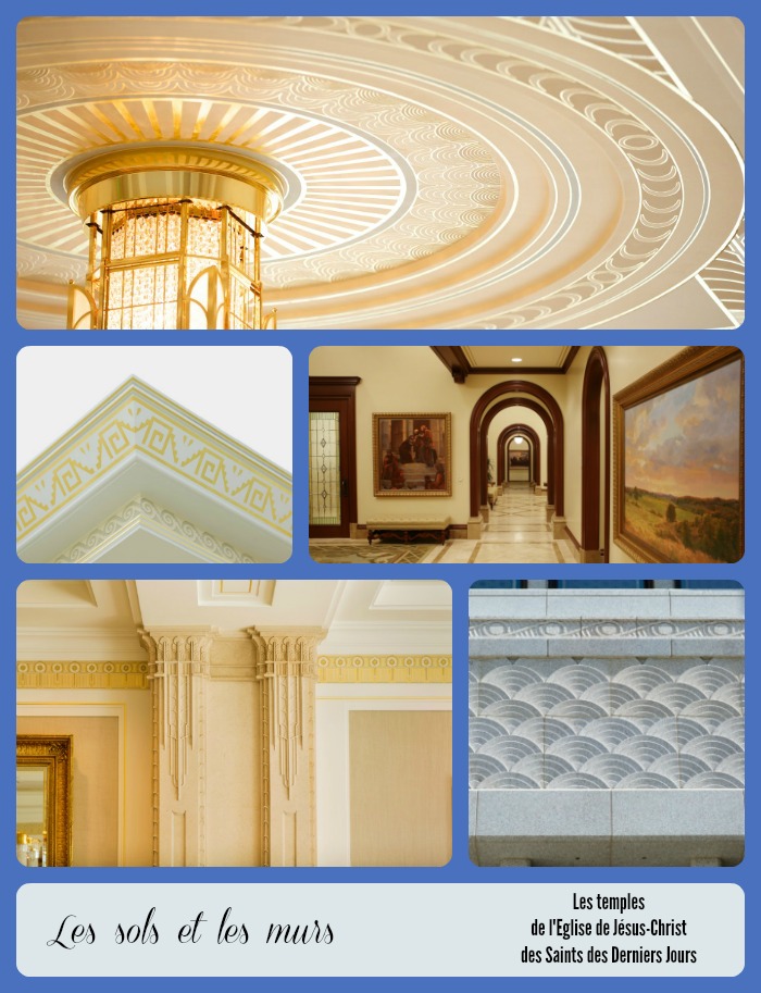 Chaque temple a un style particulier, qui lui est propre, en lien avec la culture locale. L’architecture extérieure ne le montre pas toujours, mais faites un pas dans un temple et vous comprendrez qu’ils sont tous différents. Je n’ai pas de photos de celui de Hong-Kong dans cet article, mais je me souviens que de superbes vases et poteries chinoises se retrouvent dans chaque pièces. L’Eglise a fait le choix de promouvoir des styles en adéquation avec le lieu où se situent chaque temple, afin que les membres qui y viennent puissent à la fois se sentir près de Dieu et près de leur culture. Par exemple, la photo en haut à droite (collage ci-dessous) a été prise dans le temple de Suva aux Îles Fidgi: les couleurs évoquent la mer et la végétation de ces îles.