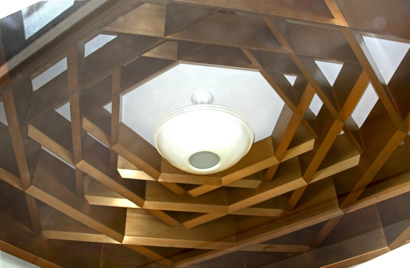 Ils ont construit un modèle réduit sur une table, puis après quelques modifications ils l’ont transporté jusqu’au siège de l’Eglise. Les dirigeants de l’Eglise étaient satisfaits du résultat. Les architectes ont donc continué à utiliser des carrés jusque dans les détails de la structure, prenant des cubes décalés de 45 degrés, les utilisant dans les baies vitrées, les gravant dans les portes en verre, et les utilisant pour les parterres de fleurs. Plus ils l’utilisaient, plus le résultat était probant. Ils ont même inséré des carrés décalés dans la barrière en fer forgée qui fait le tour du site.