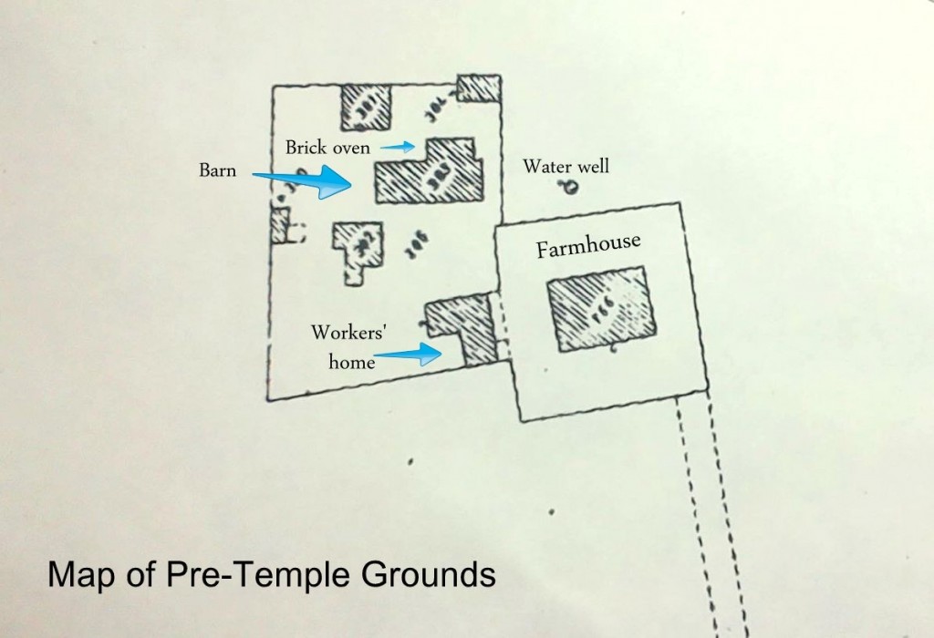 Modugno a non seulement aidé à acheter le terrain pour le futur temple, mais il était impliqué dans l’entretien des bâtiments et des jardins déjà présents sur le terrain lorsqu’il a été acheté. La partie la plus importante de l’endroit était occupée par une ferme de trois étages.